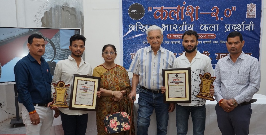 समारोह में कला निकेतन सोसायटी की ओर से कलश रत्न सम्मान से डॉ. ओमप्रकाश गुप्ता (बनारस), रंग साधना सम्मान से आरेंद्र चौधरी (लखनऊ), भजनलाल वर्मा स्मृति युवा कला प्रेरणा सम्मान से सुरेश कुमार सौरभ (बनारस) एवं विवेकानंद रजक (छत्तीसगढ़) समेत 20 आमंत्रित कलाकारों व 45 युवा कलाकारों को प्रमाण पत्र और मोमेंटो भेंटकर सम्मानित किया गया।