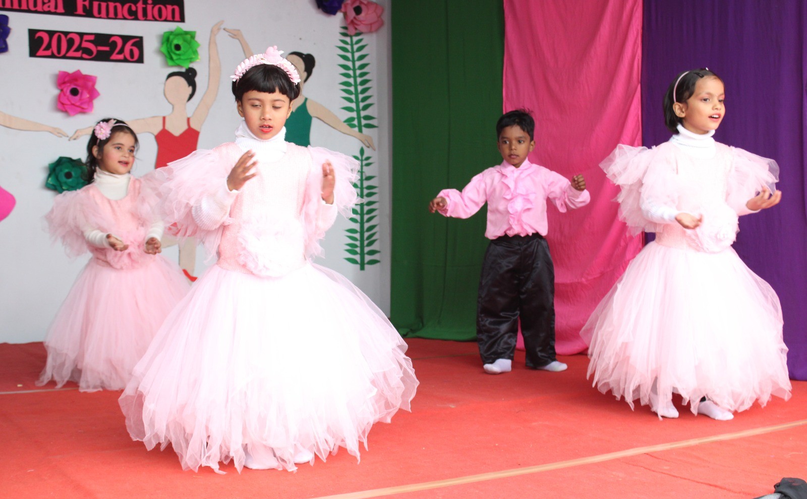 सांस्कृतिक कार्यक्रमों की श्रृंखला में एलकेजी एवं यूकेजी के बच्चों ने “चन्दा चमके तारा” और “मेरा जूता है जापानी” गीतों पर शानदार प्रदर्शन किया। सीनियर कक्षाओं के विद्यार्थियों ने “मोबाइल टॉप” नाटक के माध्यम से मोबाइल की उपयोगिता के साथ उसके दुष्प्रभावों को प्रभावशाली ढंग से प्रस्तुत किया। इसके बाद बच्चों ने “बुम बुम बोले”, “तारा रा”, “जीवन के दिन आरम्भ”, पंजाबी नृत्य और “शुभारंभ रंग” जैसी प्रस्तुतियों के माध्यम से भारतीय संस्कृति की जीवंत झलक पेश की। दर्शकों ने तालियों से बच्चों का उत्साहवर्धन किया।