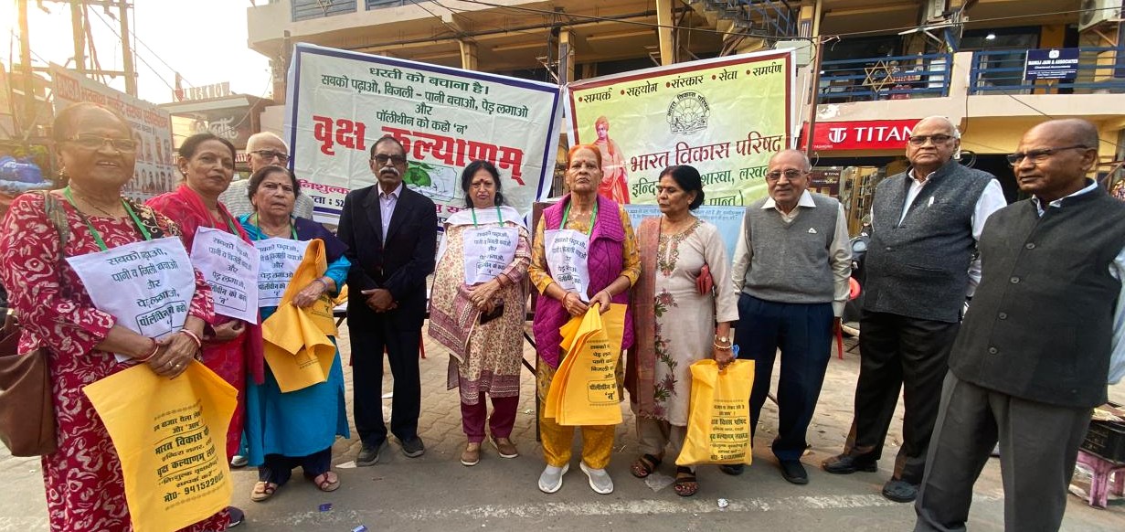 लखनऊ। पर्यावरण संरक्षण एवं पॉलिथीन बहिष्कार जन-जागरण अभियान के 19वें चरण के अंतर्गत शुक्रवार को भूतनाथ बाजार में जागरूकता कार्यक्रम आयोजित किया गया। यह कार्यक्रम वृक्ष कल्याणं के सचिव एवं संयोजक सीनियर इंजीनियर बिपिन कांत के नेतृत्व में तथा भारत विकास परिषद इंदिरा नगर के सहयोग से बाबा भूतनाथ मार्केट पुलिस चौकी के निकट आयोजित हुआ। कार्यक्रम का शुभारंभ प्रांतीय अध्यक्ष डी.एस. शुक्ला, दोनों संस्थाओं के अध्यक्ष राजेश कुमार और सुधा सिंह ने किया।