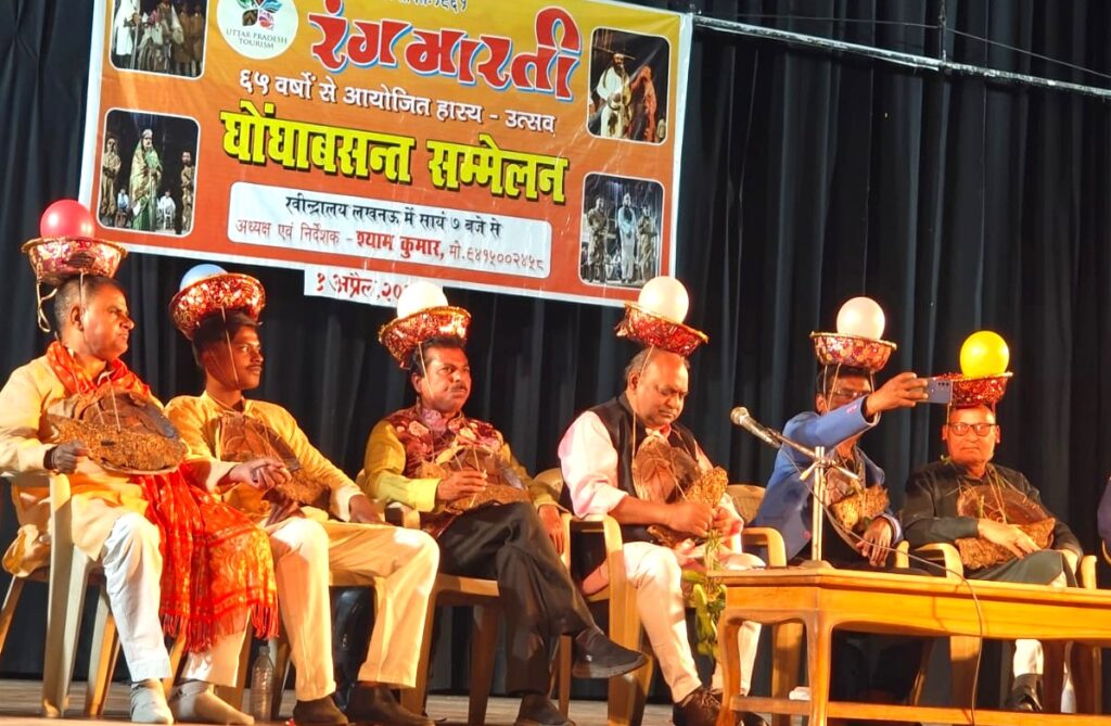 लखनऊ। नवाबी नगरी लखनऊ में आज अप्रैल फूल के अवसर पर हंसी के ठहाकों का सैलाब उमड़ पड़ा। अवसर था अखिल भारतीय सांस्कृतिक एवं साहित्यिक संस्था ‘रंगभारती’ द्वारा आयोजित विश्व के सबसे पुराने हास्य-आयोजन ‘घोंघाबसंत सम्मेलन’ का। पिछले 65 वर्षों से अनवरत चली आ रही इस विलक्षण परंपरा ने इस बार भी रवीन्द्रालय के मंच पर धूम मचा दी।