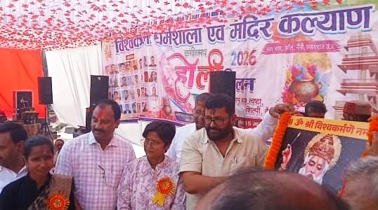 लखनऊ/ प्रयागराज। विश्वकर्मा धर्मशाला एवं मंदिर कल्याण ट्रस्ट की ओर से कॉटनमील रामलीला मैदान, नैनी प्रयागराज में होली मिलन समारोह का भव्य आयोजन हुआ। कार्यक्रम की शुरुआत भगवान विश्वकर्मा के चित्र पर माल्यार्पण एवं दीप प्रज्वलन के साथ की गई। इस अवसर पर महामंडलेश्वर पूज्य श्री विनयानंद जी महाराज एवं रामाशीष जी महाराज की गरिमामयी उपस्थिति रही।
