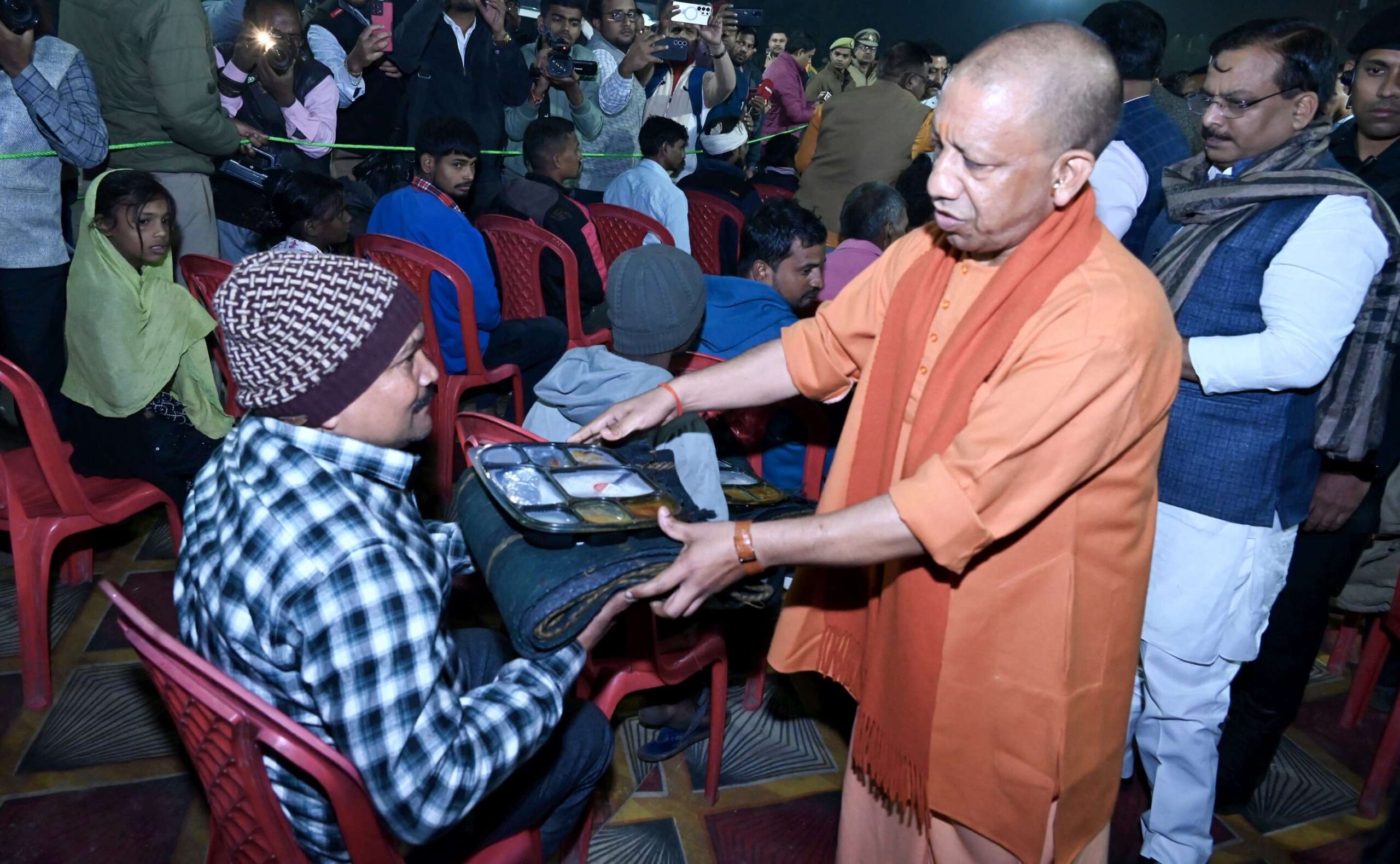 लखनऊ। उत्तर प्रदेश के मुख्यमंत्री योगी आदित्यनाथ ने आज जनपद गोरखपुर में रेलवे स्टेशन और झूलेलाल मंदिर के पास स्थित रैन बसेरों का निरीक्षण किया। इस दौरान उन्होंने रैन बसेरों में ठहरे जरूरतमन्द लोगों से मुलाकात कर उनकी कुशलक्षेम जानी और उपलब्ध सुविधाओं की जानकारी प्राप्त की। मुख्यमंत्री ने स्वयं कम्बल और भोजन वितरित कर आश्वस्त किया कि सरकार शीतलहर से राहत दिलाने के लिए पूरी तरह प्रतिबद्ध है।